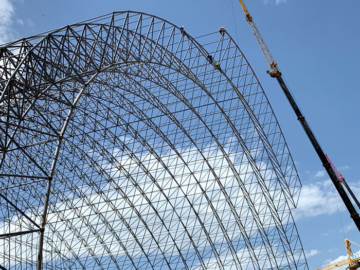 (2)网架加工前应对现场尺寸进行复测,确认无误后方可进行加工、安装;网架制作、运输、安装应遵守《空间网格结构技术规程》JGJ7-2010、《钢网架阜新螺栓球节点》JG/T 10-2009、《钢网架阜新螺栓球节点用高强度螺栓》 GB/T 16939-2016、《阜新钢结构阜新工程阜新施工规范》 GB50755-2012、《阜新钢结构阜新工程施工质量验收标准》 GB50205-2020。